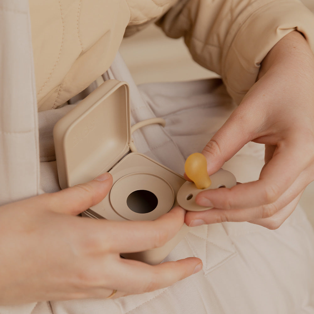 - Soothing pouch: pacifiers, one clip, and a clean storage case.