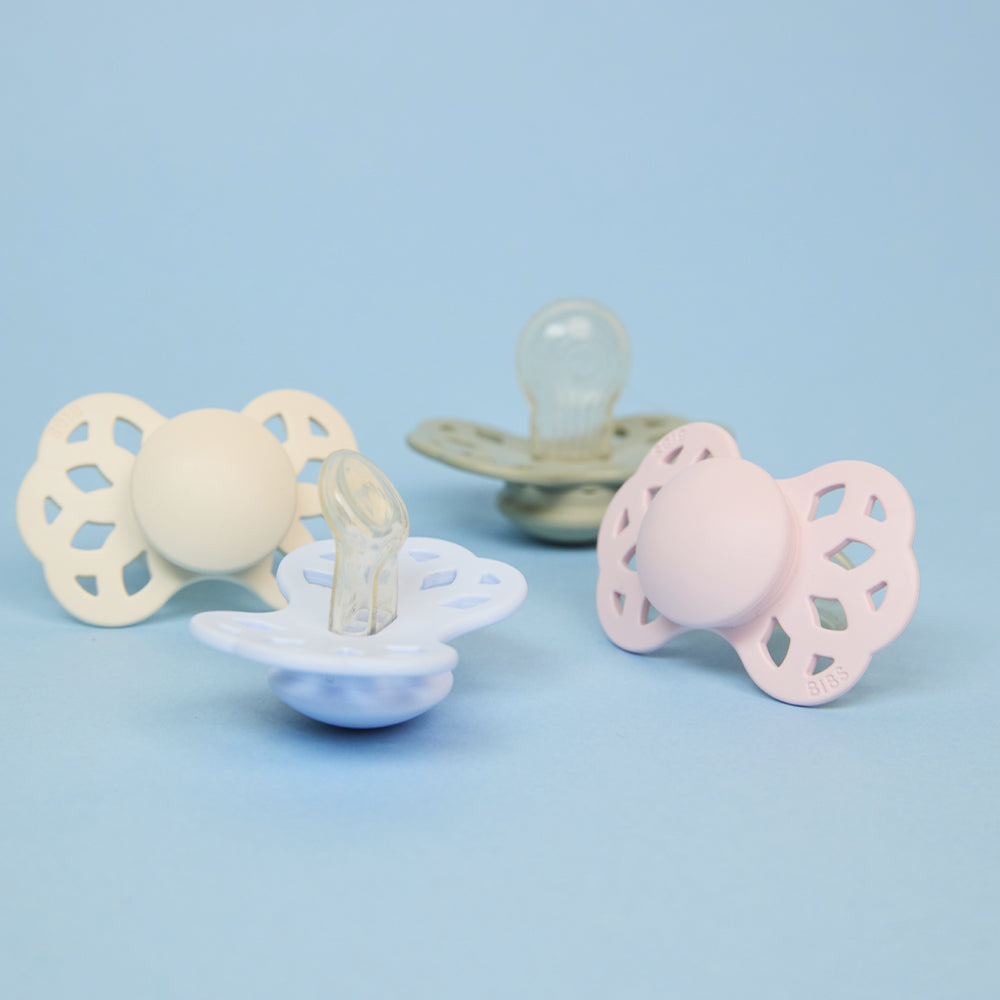 The teat is made from silicone or natural rubber latex. Teats produced from natural rubber latex can provide an allergic reaction to some children. Do not use a soother that has changed color or presents irregularities. A natural rubber latex teat can expand slightly when used. Always monitor the baby when using a soother.